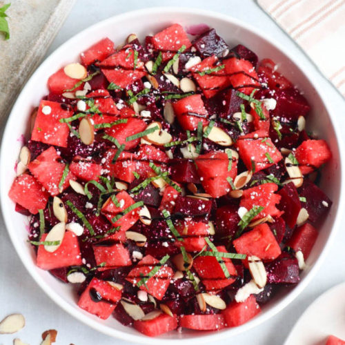 - Feta: Using a whole block cut into small cubes is our favorite way to present the dish. It's also creamier and less dry. Crumbled feta, goat cheese, or queso fresco also work well!